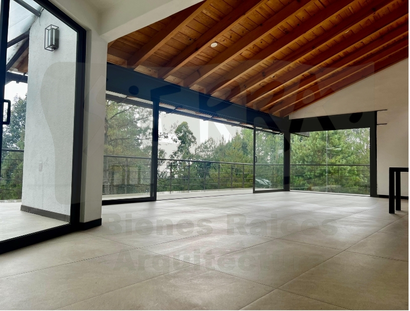 Una propiedad de 3,446 m² donde el lujo y la naturaleza convergen. Con 340 m² construidos en tres plantas, este hogar ofrece espacios fluidos entre salas amplias, terrazas con atardeceres privados y una cocina que inspira momentos inolvidables. La suite principal con balcón, vestidor y baño de lujo redefine el descanso, mientras los ventanales panorámicos conectan cada rincón con el bosque. Vive la elegancia discreta de Valle de Bravo en un diseño que celebra la tranquilidad y la convivencia.